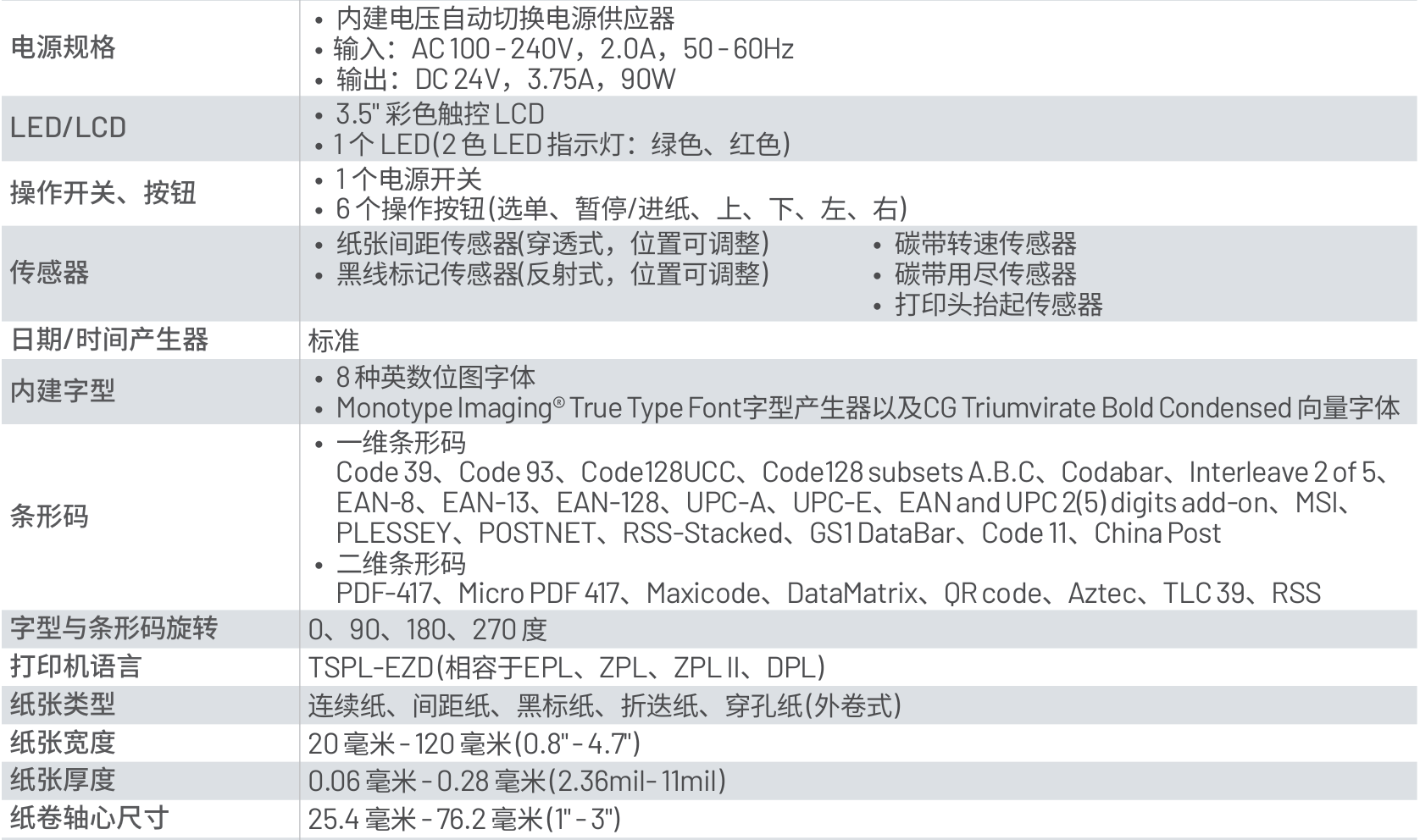 • 透過多點印字頭(TPH)壓力調節和進階的加熱線調節功能,可確保一致的高質量打印。