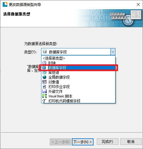- 在 bartender 中,選擇“數據源”或“數據庫”選項。